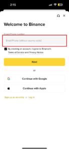 ধাপ ১: Binance অ্যাপ বা ওয়েবসাইটে প্রবেশঃ
