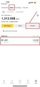 Spot Wallet এ গিয়ে Transfer বাটনে ক্লিক করে ডলার ট্রান্সফার করতে হবে।